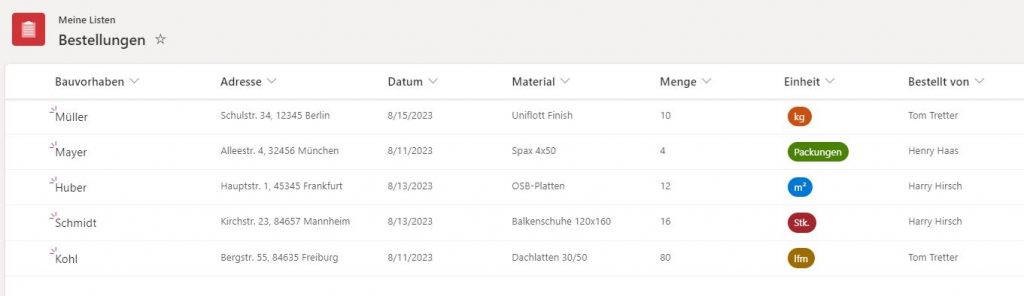Projektverwaltung und Aufgabenliste: Erstellen Sie eine SharePoint-Liste für die Verwaltung von laufenden Projekten. Jedes Projekt könnte eine eigene Spalte innerhalb der Liste haben, mit Informationen wie Projektname, Kontaktdaten, Start- und Enddatum, Budget oder Projektstatus. Zusätzlich könnten auch Spalten erstellt werden, um Aufgaben, Zuständigkeiten und Fristen zu verfolgen.